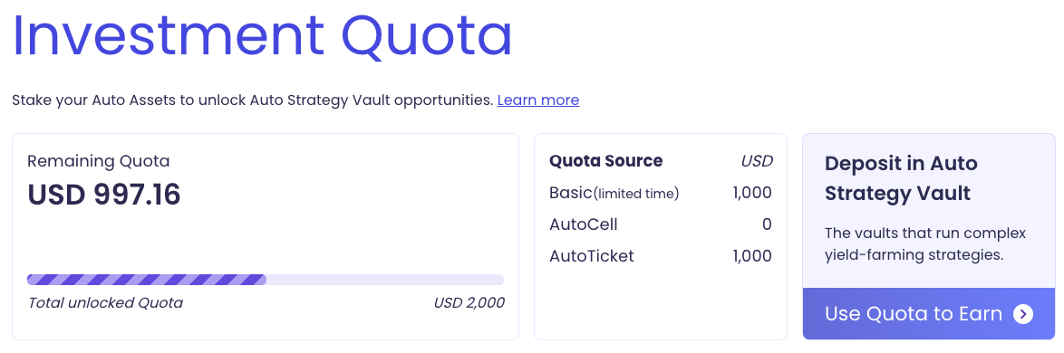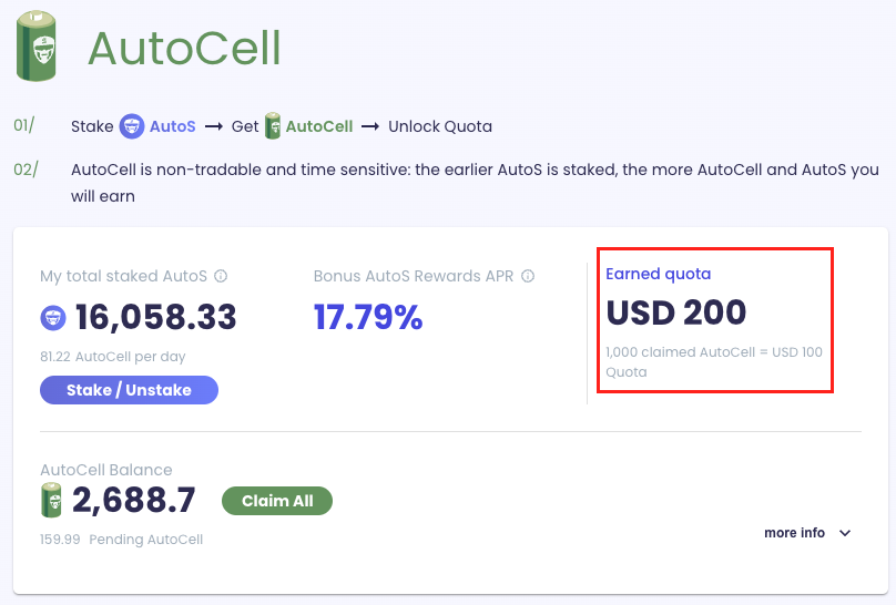Users can obtain more investment quota with AutoCell and/or staked AutoTicket.