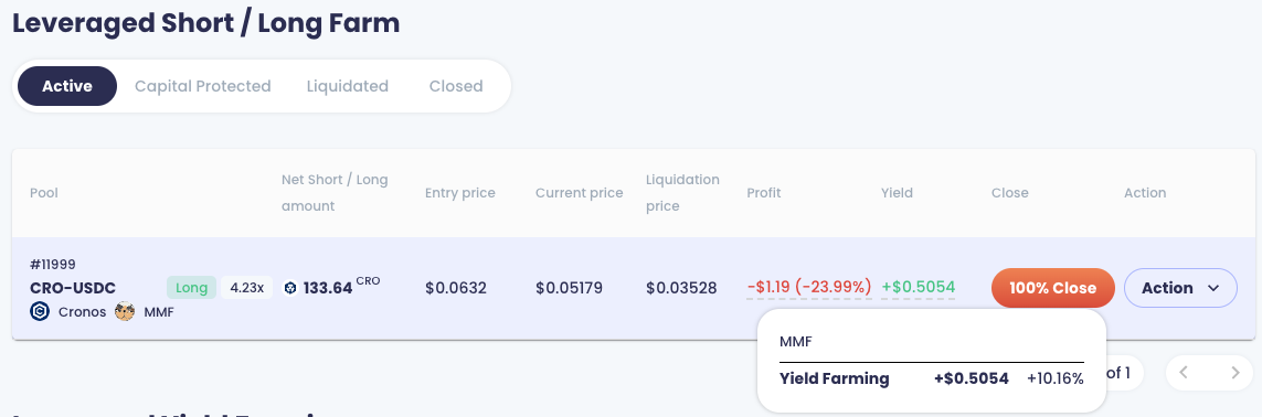 The maximum Net Short position on CRO for a Leveraged Short Farm is 1.5x short under 5x leveraged yield farming, i.e. you initially hold a net short position on CRO that is equal to 1.5 times your principal.