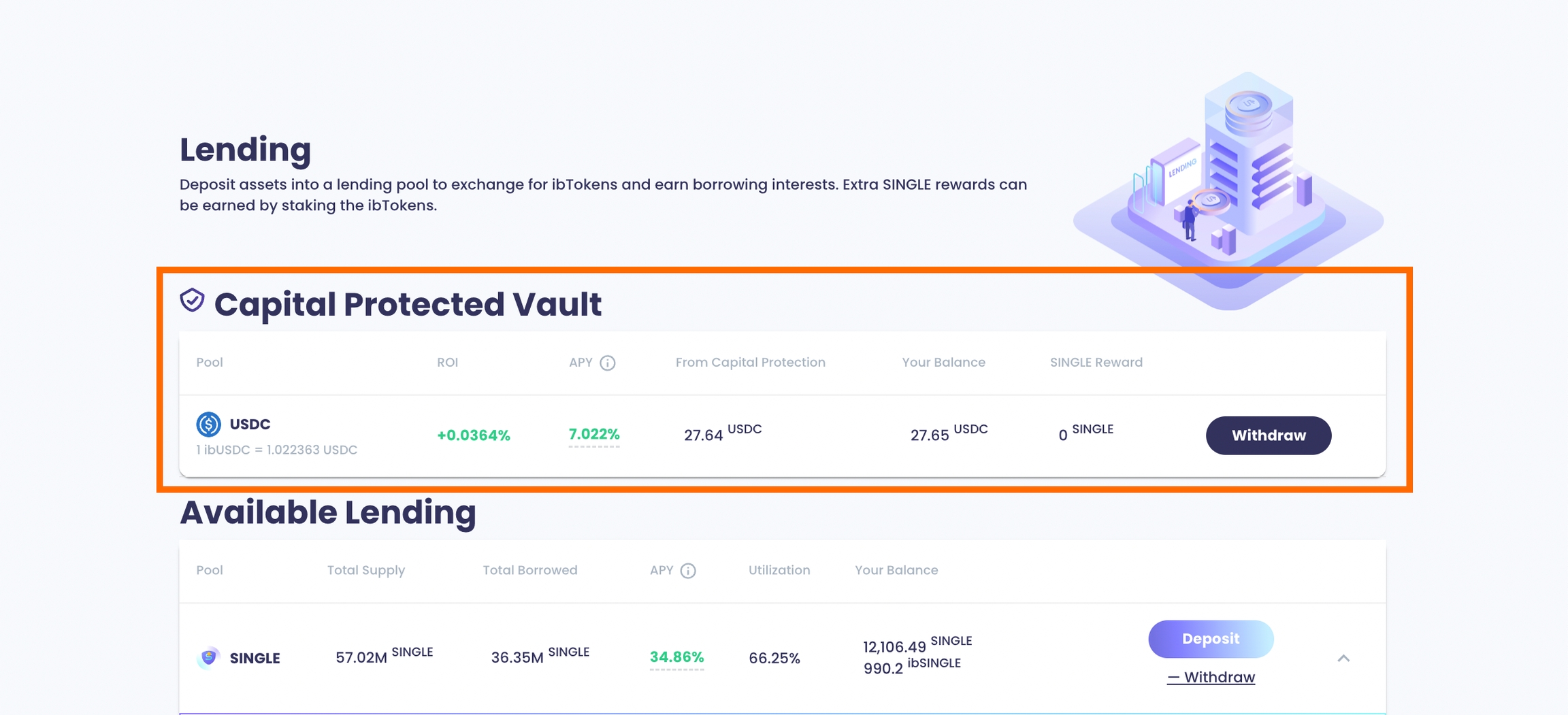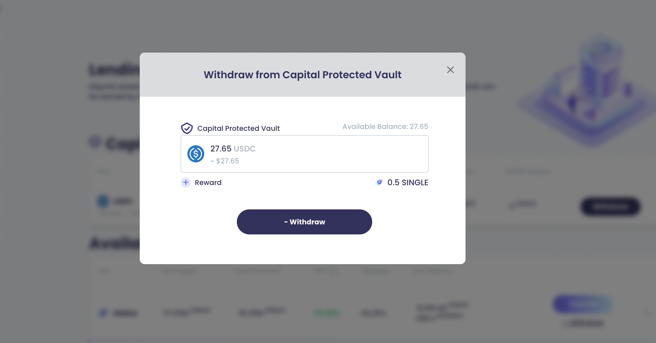 2. Users may click "Withdrawal" in the Capital Protected Vault of the Lending page.