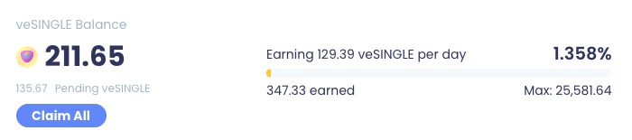 When you wish to claim the pending veSINGLE, click "Claim All".