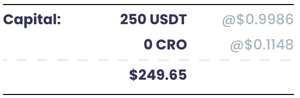 포트폴리오 영역에 표시된 "자본(Capital)" 값은 미국 달러로 표시되며, 포지션 개설 시점의 공급 자산의 실시간 가격에 따라 계산됩니다. 공급 자산이 스테이블코인인 경우에도 약간의 편차가 발생할 수 있습니다. (예: 지갑에서 250 USDC 공제, 자본은 249.65 달러로 표시됨)