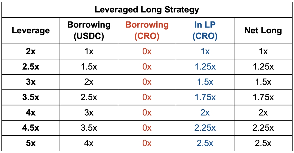 위의 예시에서는 CRO에 대한 부채가 없으므로, 원금의 1.5배에 해당하는 75,000 CRO (약 15,000달러)의 순 롱 포지션이 생성됩니다. 이렇게 포지션을 취하면, CRO의 가격이 상승하면 가격 효과를 이용하여 수익을 얻을 수 있습니다. 다만, 거래 수수료와 플랫폼 수익을 고려하기 전에는 이야기입니다.