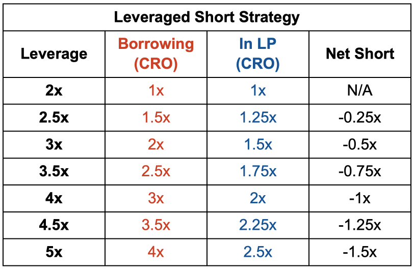 농사 포지션을 시작하면, 50,000 CRO (약 10,000달러)의 순 숏 포지션이 생성됩니다. 이는 원금의 1배에 해당하는 순 숏 노출을 가지게 됩니다. 이때, CRO의 가격이 하락하면 가격 효과를 이용하여 수익을 얻을 수 있습니다. 다만, 거래 수수료와 플랫폼 수익을 고려하기 전에는 이야기입니다.