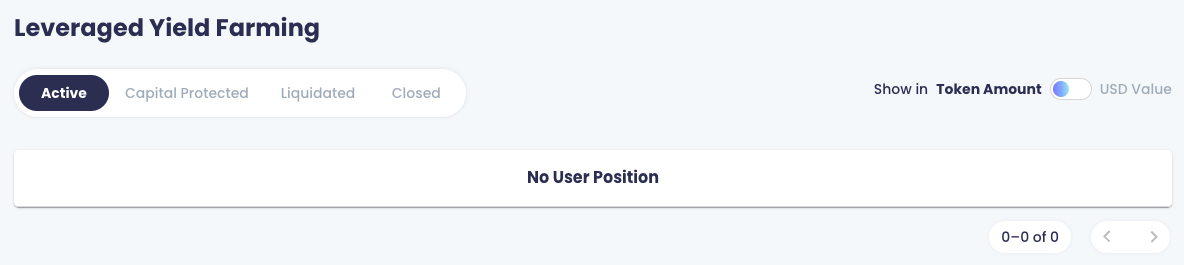 기존의 "USD 가치" 뷰에서는 사용자들이 농사 토큰 쌍의 최신 가격에 따라 USD로 표시된 농사 포지션 개요를 확인할 수 있습니다. 예를 들면 다음과 같습니다: